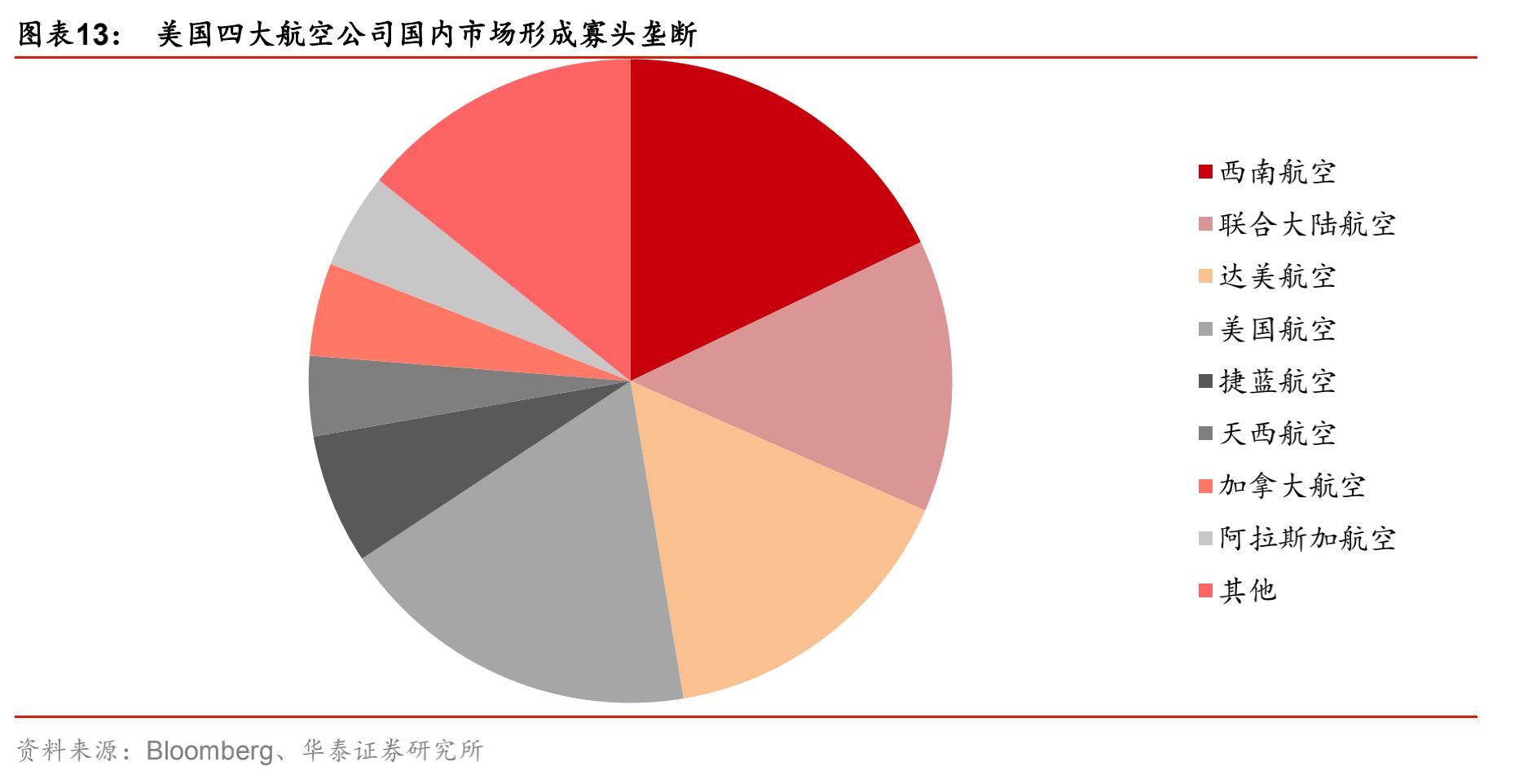 四大航空公司占到了全美市场份额的 80% 以上。