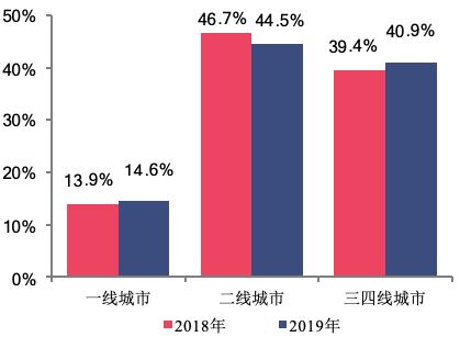 图3 百强代表企业2018、2019年各等级城市销售额分布