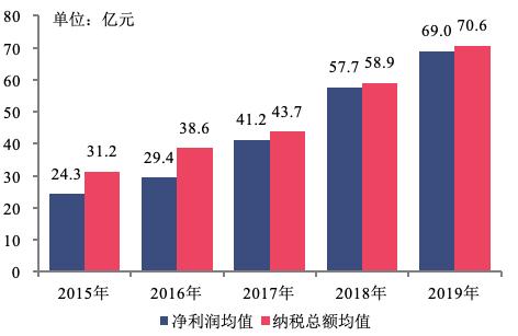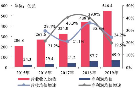 图6 百强企业2015-2019年营业收入与净利润均值变化情况