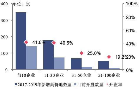 图13 各层级百强企业2017-2019年新增高价地开盘情况