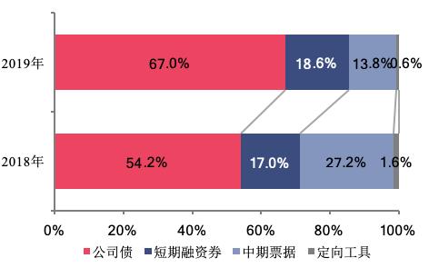 百强企业的国内信用债发行总量减少,公司债略有增长,中期票据回落明显,此外海外债发行量有所回升。2019年,百强企业国内信用债发行规模为2036.4亿元,同比减少16.7%,其中公司债发行规模超1400亿元,同比增长7.7%,占百强企业信用债发行总量六成以上;中期票据发行降温,发行量同比减少58.0%;短期融资券发行量同比回落11.8%。在境内融资受阻的情况下,百强企业积极寻求海外市场融资渠道,海外债发行规模同比增长8.8%至3388.1亿元。