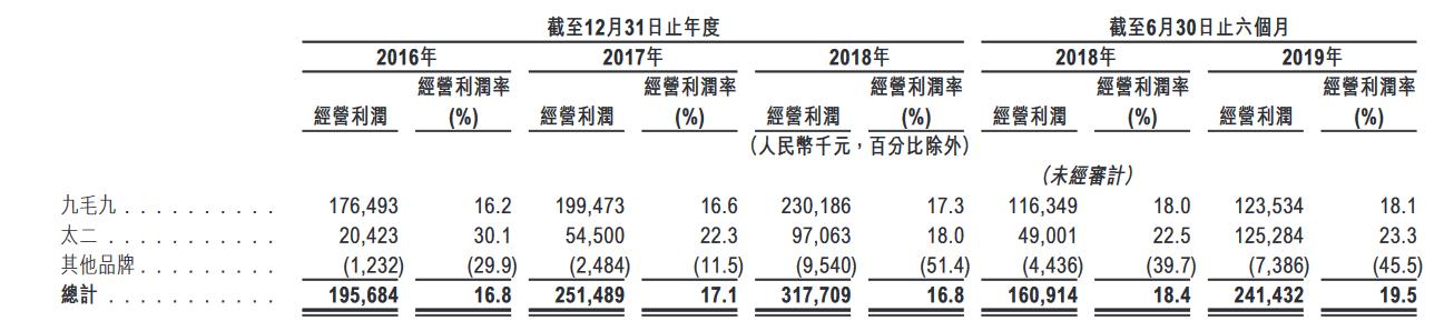 招股书显示,九毛九目前运营旗下品牌287间餐厅并管理41间加盟餐厅。其中,九毛九141间自营店,太二酸菜鱼121间自营店,两个主力品牌给九毛九带来的营收比例达到98%。招股书显示,太二酸菜鱼已逐渐接力九毛九,成为公司的业绩支柱和增长来源。