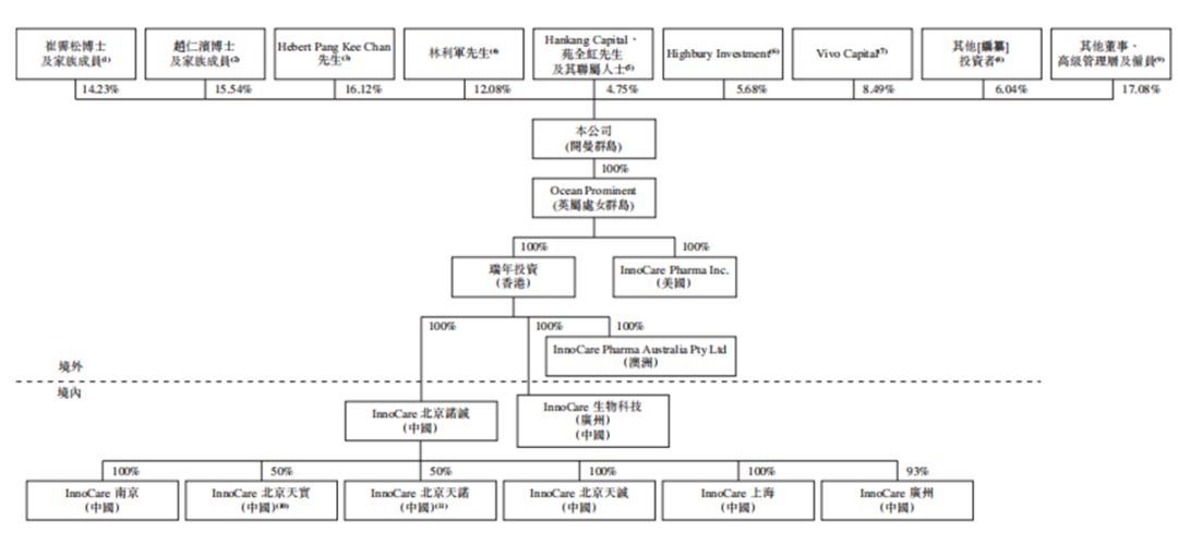 2013年12月13日施一公和严知愚合作创立的InnoCare北京诺诚。2017年4月17日,瑞年投资以5480万元收购InnoCare北京诺诚的全部股权,成为InnoCare北京诺诚的唯一股东。诺诚健华在2016年3月6日将瑞年投资变成其全资子公司,自此,诺诚健华间接持有InnoCare北京诺诚的全部股权。