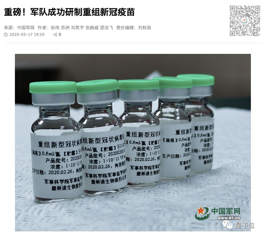 而中国军事科学院研发的疫苗3月16日已获批进行临床试验,根据中国军网的报道,疫苗16日已经开始注射。