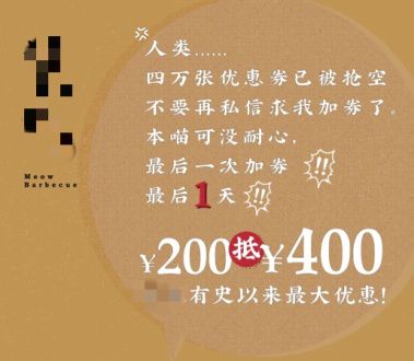 打开这篇公众号推文,方沁才看到这家烤肉店推出了提前购的活动,用200元就能买到400元的代金券,购买之后除了七夕、圣诞等节日外,一年内有效。