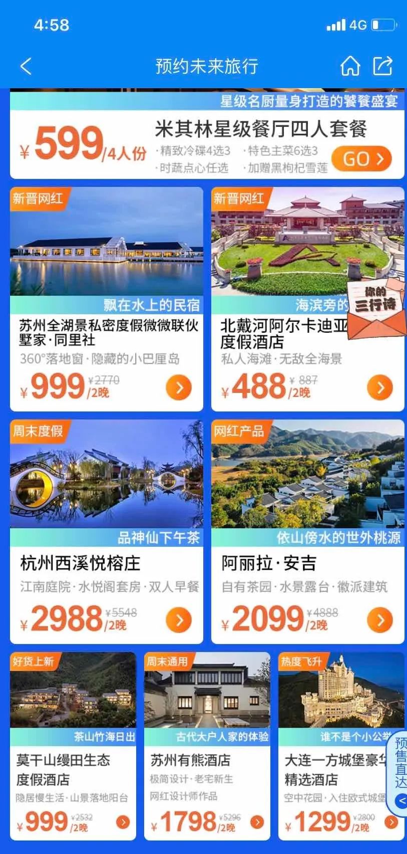 这包括携程这样的大平台。根据携程最新推出的活动,其目前与各大平台民宿、酒店合作的预售大促活动,力度甚至超越往年“99酒店节”(携程每年9月9日的大型酒店预售促销)。