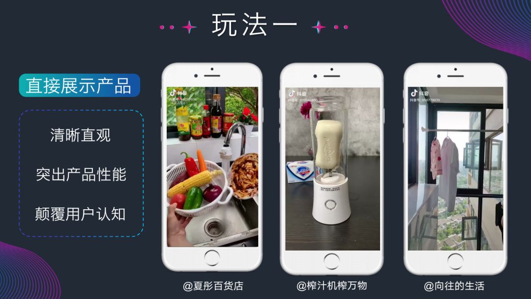 直接去展示产品的一个玩法,这种玩法非常的清晰和直观,视频中可以不出现人,但是一定要突出产品性,或者突出颠覆用户认知的一些特点。