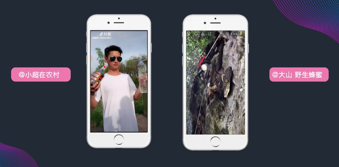 我们再来看另外一个账号,卖野生蜂蜜的,他做了采集蜂蜜的一个场景,我们很少人看得到这样的场景,很新奇,而且他还拍了爬天梯这些很有难度的动作,告诉你千辛万苦才采到这些野蜂蜜,这些动作卖你300块钱一罐,贵不贵?不贵,因为难获得。