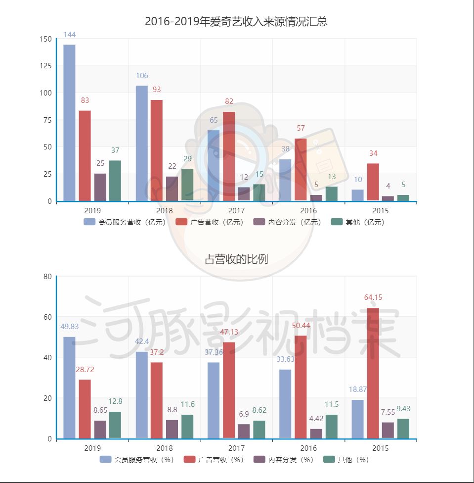 在收入来源构成比发生巨变的同时,视频平台的营收正在稳步增长。腾讯今日公布腾讯视频全年营运亏损已经降至30亿元以下。从爱奇艺2019年财报可见,公司总营收也有所增长。