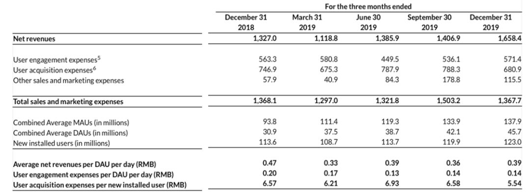 用户数据方面,公司2019年第四季度平均MAU为1.37亿,同比增加了46.9%,平均DAU为4570万,同比增加了47.8%。每个DAU的平均每日时间为59.4分钟,而2018年第四季度为63.0分钟。