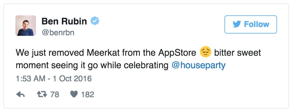 几乎同时,2015 年 3 月,Meerkat 的竞争对手 Periscope 还没上线就被 Twitter 斥资近 1 亿美金收购。