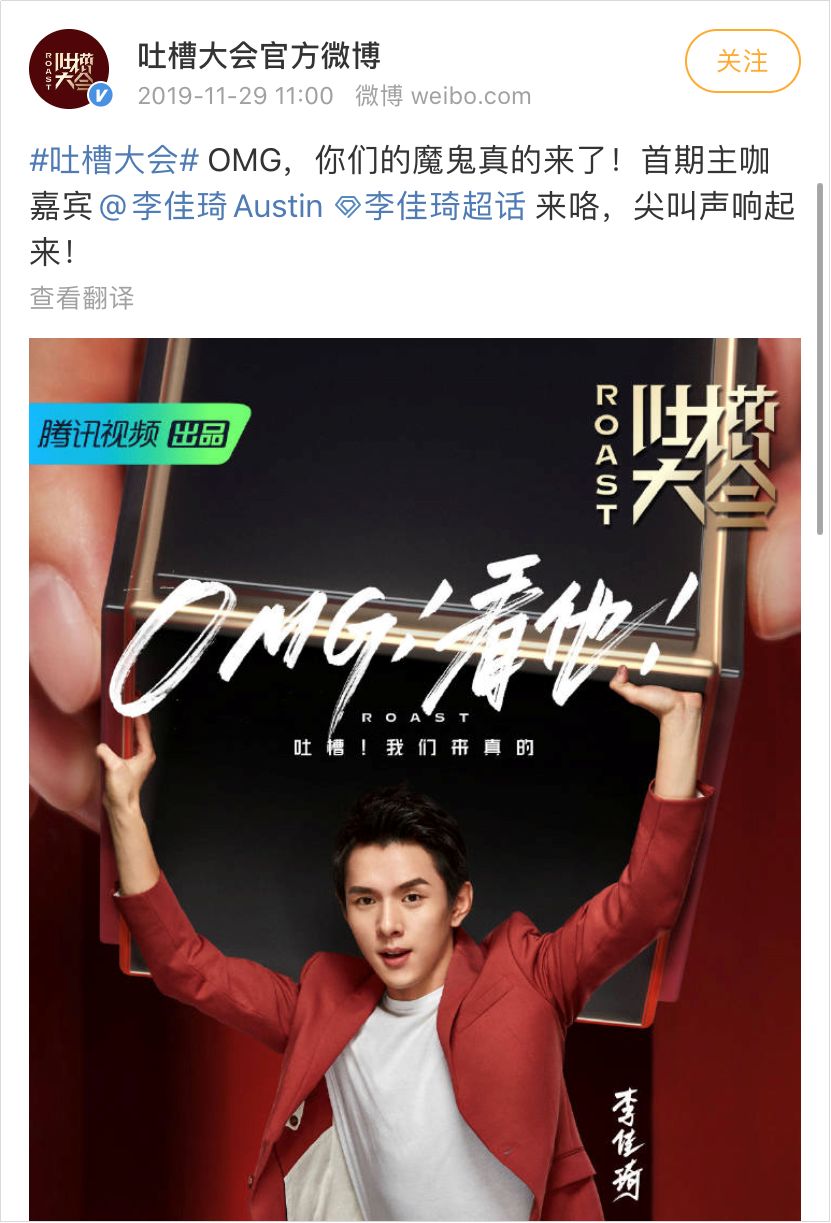 2019 年 12 月,李佳琦还登上《吐槽大会》,成为当期的主咖。