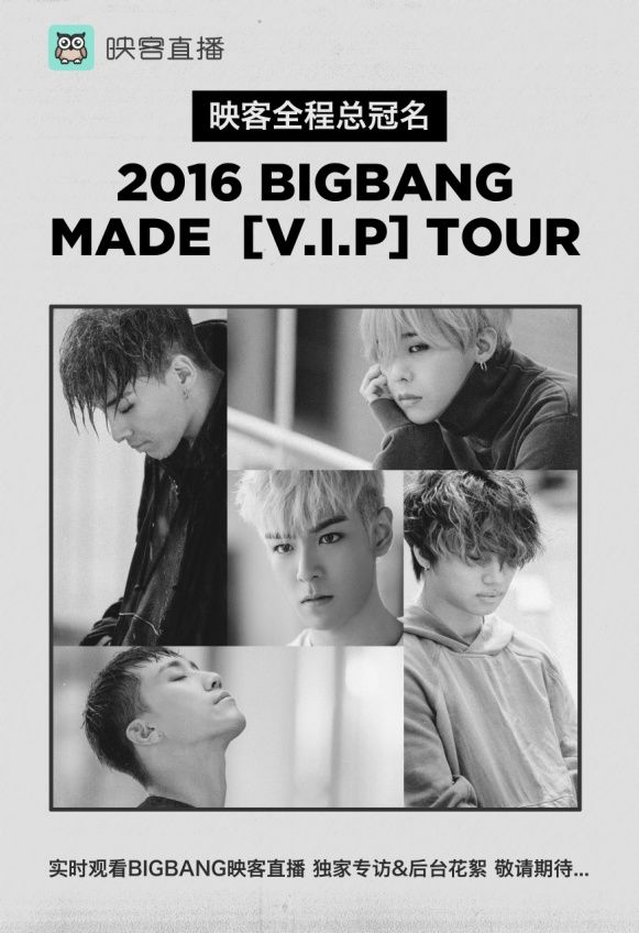 2016 年 3 月,映客直播宣布冠名 BIGBANG 中国巡回演唱会,在长达 3 个月的巡演过程中,映客全程直播演唱会现场。