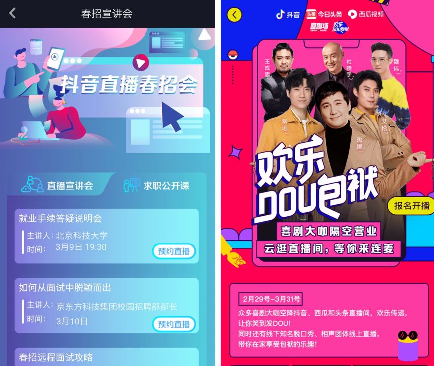 南开、北航……多家名校联合抖音,将校招宣讲会开到了直播间;