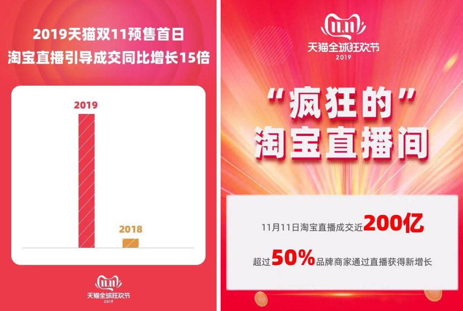 到了双 11 预售首日,淘宝直播引导成交同比增长了 15 倍;11 月 11 日,淘宝直播成交近 200 亿。