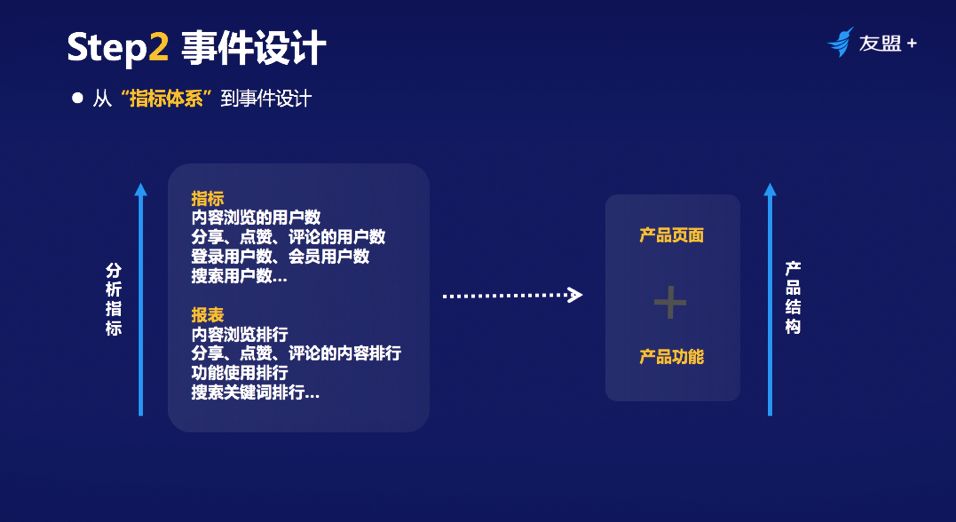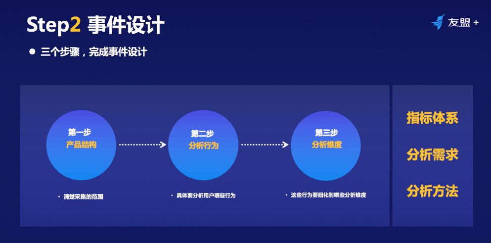 后面会通过指标体系、分析需求、分析方法这3个角度,在去结合这三个步骤,进行事件结构化设计的详细说明。