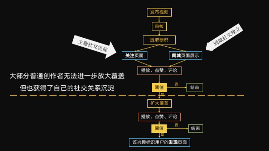 绝大多数创作者的内容都无法走到黄线以上进一步放大势能,但这部分用户也获得了自己的社交关系沉淀,建立自己的小圈层。