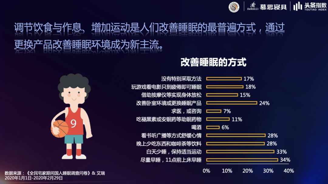 睡眠成为现代人的头等大事。为了能够提高睡眠质量,扭转之前的不良睡眠习惯,大家也都纷纷采取行动改善睡眠。早起早睡、看书、听音乐、运动、少看手机等方式被众多人认可。