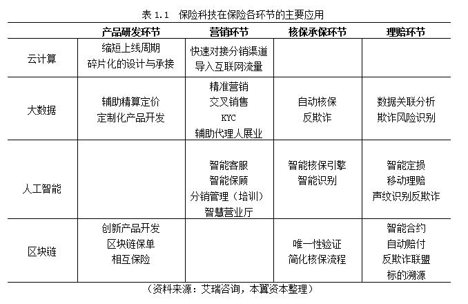 云计算、大数据、人工智能、区块链等四项核心技术的日益成熟为保险行业各环节价值链的重塑再造带来机遇。就每项技术的主要功能而言,云计算为保险行业提供了新的IT基础设施和新的“应用软件”(各类保险SAAS),大数据解决数据源问题,人工智能解决效率问题,区块链解决信任问题,总结而言,保险科技的应用可以令产业各个环节运行得更加精准、节能和高效,从而拓展了保险机构的可盈利空间,打破了传统粗放生态下的恶性循环:产品与需求脱节+销售与服务脱节,销售进展困难,费用不断增长,保费规模增速下降,险企难以盈利,提升产品价格,销售更加困难……