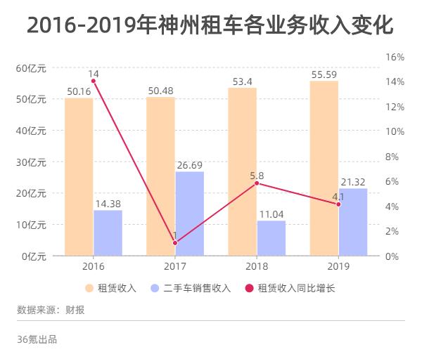 2019年,神州租车的租赁收入同比增加4.1%至55.59亿元。其中,汽车租赁收入为49.17亿元,同比增长9.6%;车队租赁及其他收入为6.42亿元,同比减少24.9%。