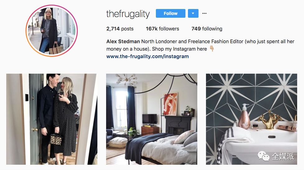 比如,The Frugality时尚博主Alex Stedman等人为了追求视觉美感,将插播广告尽可能设计得与自己的贴文风格相一致,从而保持轮播图片的审美效果。