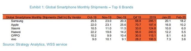 最前线 | 疫情之下,华为、OPPO、vivo二月出货量均被腰斩