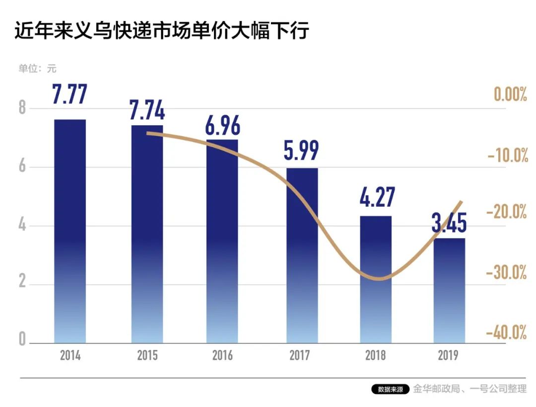 刚刚过去的2019年,迎来了义乌快递业史上最严重的一次价格战,这一年,快递单价平均价格被压到了1.9元,最低时,甚至才1.2元。