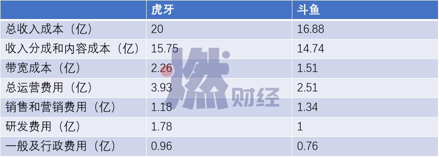 虎牙和斗鱼的成本结构非常像,收入成本和营收呈正相关,虎牙拥有更多的公会和中小主播,分成上稍多一些,斗鱼在财报中还特意提到,“经过公司的努力,降低了顶级独家签约主播的签约费”,说明斗鱼在努力控制成本,这一点也可以从营销费用的大幅减少看出。