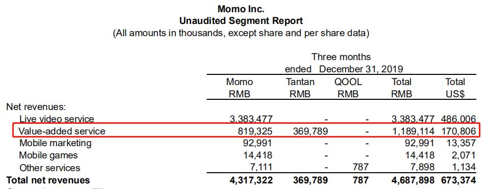 数据给出了坚强的“佐证”,2019年第四季度,探探贡献的增值服务收入为3.698亿元,占到当季增值服务总收入的31.1%。