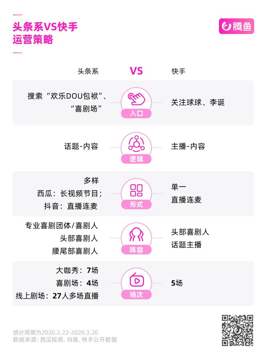 作为这一波喜剧内容登陆线上的主要平台,头条系与快手呈现出不同的玩法和运营策略。