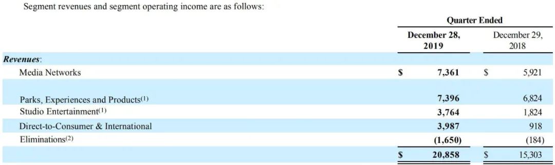 挑战不仅仅来自“疫情”。今年2月,在疫情的紧张氛围下,迪士尼交出了2020财年的第一份业绩成绩单,据财报显示,截至2019年12月28日,迪士尼2020年第一财季实现营业收入209亿美元,较上年同期增长36%;净收入21亿美元,较上年同期下降23%。