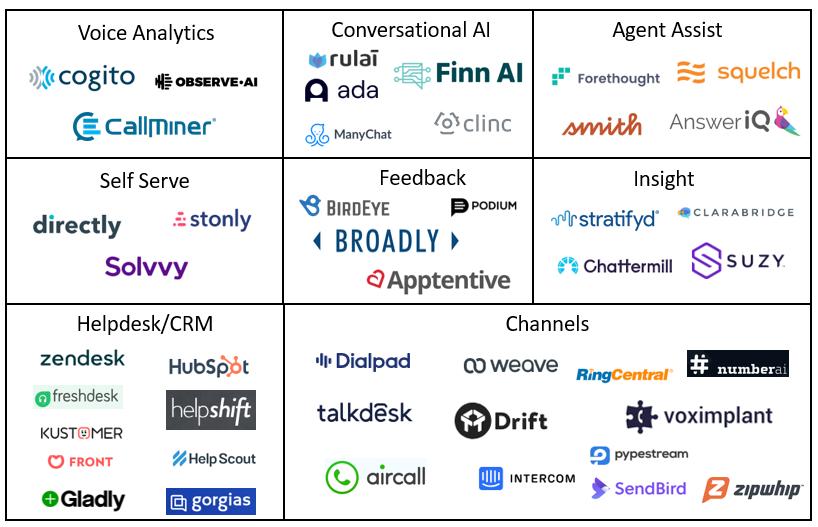 •增强服务 - 客服人员培训、文本和语音分析、主动式客户服务等。创新型公司正在构建基于或介于客户交互之间的解决方案。简单的集成是至关重要的。
