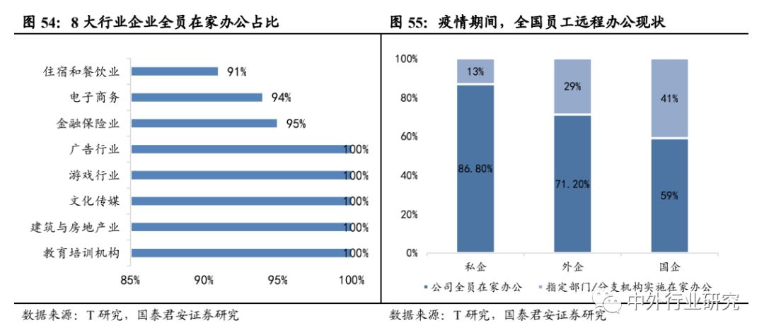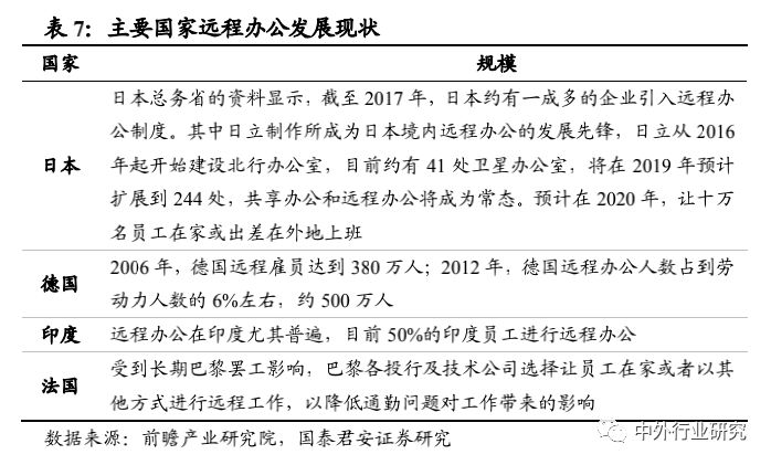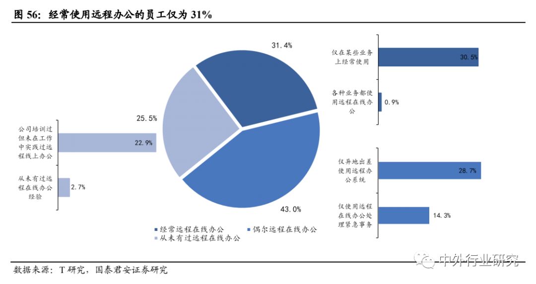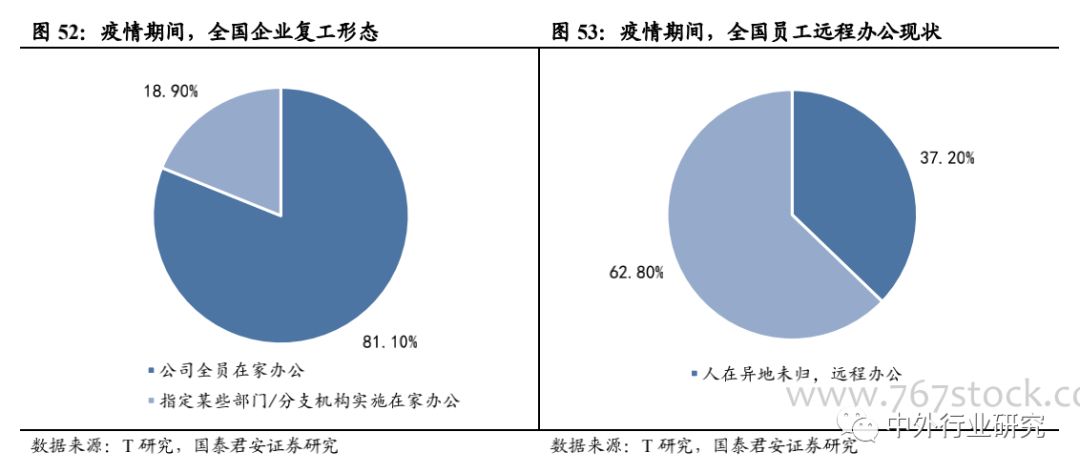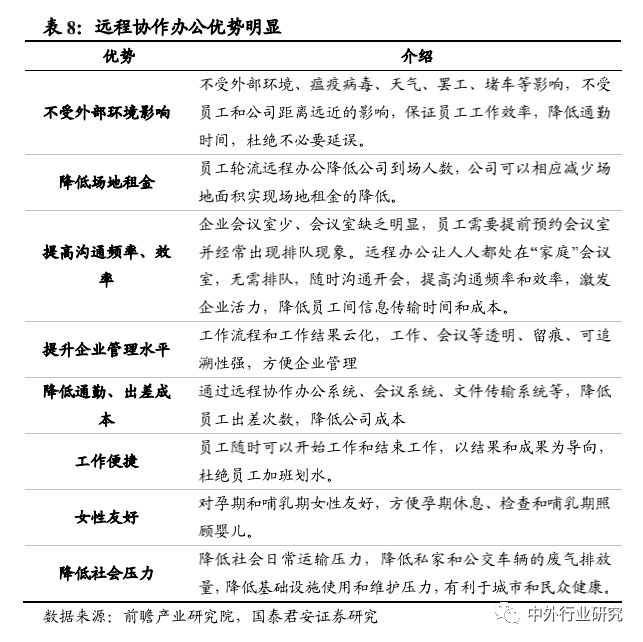 结合国内现状,国泰君安证券分析师认为远程协作办公的优势会进一步凸显。