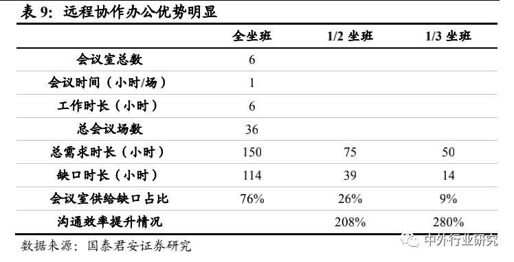 国泰君安证券分析师认为,企业半数员工选择远程办公可以将沟通效率提升2 倍。