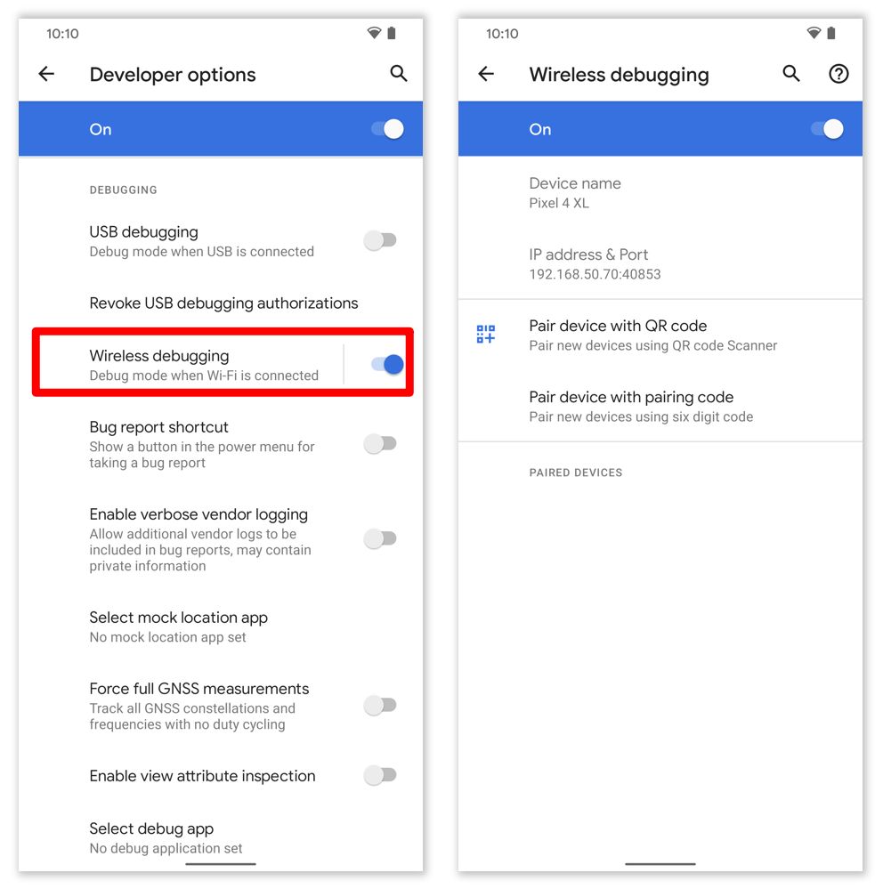 网络 ADB 调试:Android 11 DP2 的开发者选项中出现了内置的网络 ADB 调试功能,借助这个功能,我们可以无需数据线连接、直接通过局域网向其它设备发送并执行 ADB 命令。