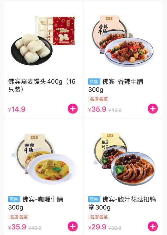 同样瞄准快手菜的还有佛宾。作为广东五星级酒店佛山宾馆旗下独立的餐饮公司,佛宾从 18 年开始开发快手菜,并于 19 年中旬开始售卖产品,最终,其推出的牛腩、牛杂、鲍汁扣鸭掌等快手菜品销量在疫情期间取得了是 10 倍的增长。
