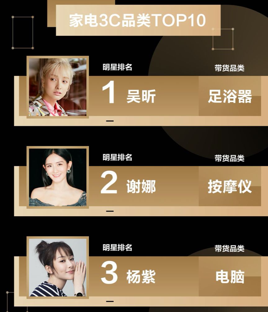 而对于女明星而言,带货情况则更加复杂,除了传统的女装、美妆等女性领域外,在男装、家电3C这些由男性消费者主导的消费品类中,不少女明星正成为一股“新女子力”,成为超越大多数男明星影响力的存在。