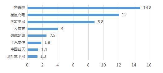 总量超过1万台的充电运营公司规模(单位:万台) 数据来源:赛迪顾问
