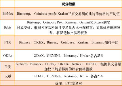 通过上图可以发现:BitMex 的现货指数最为简单,直接取三家交易所现货价格平均值,存在一定的风险;而火币以及 OKEx 选择四家交易所现货价格,权重各占 25%,稳定性提升不少;币安选择五家交易所现货价格加权平均,再次提升现货指数的稳定性;Bybit 是根据五家交易所每月交易量占比分配原始权重,如果价格出现异常,则降低该交易所的实时权重。因此,Bybit 的标记价格更加全面、可靠。