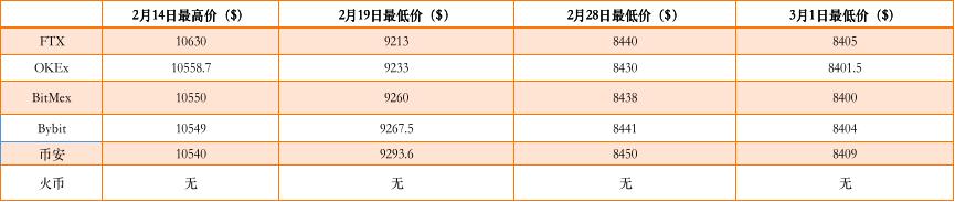 实际上,深度影响最大的还是价格,尤其是极端行情,深度更能对投资者能起到强有力的保护作用。我们统计了近期极端行情下,6 家合约交易所的价格变化,如下图所示: