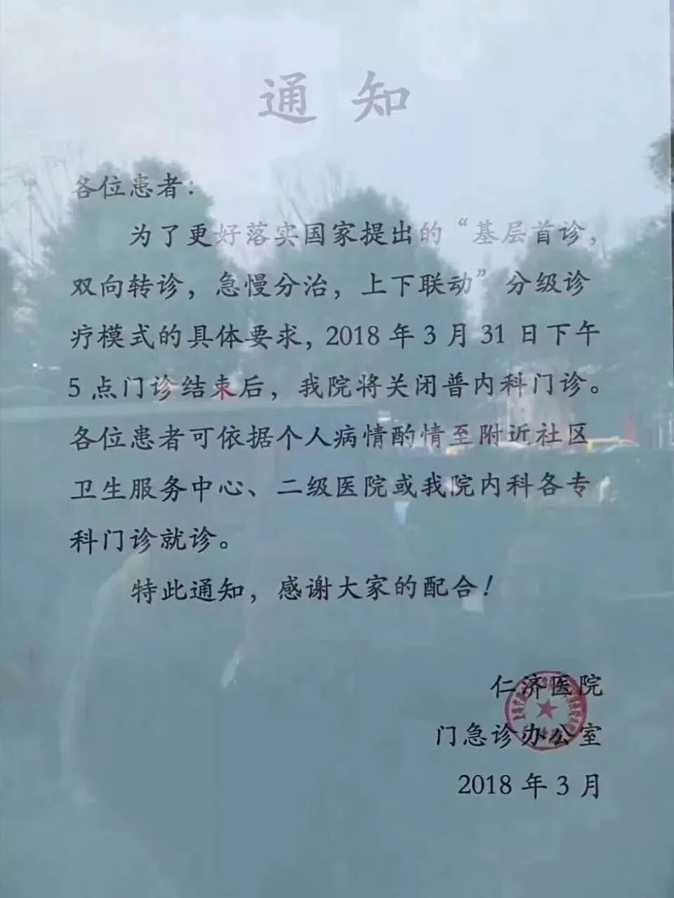 上海仁济医院在2018年3月取消了以开药为主的普内科门诊