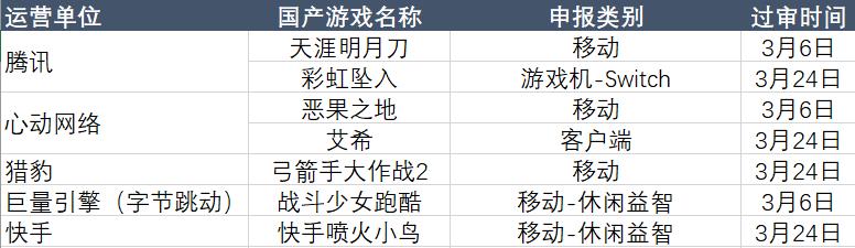 最前线 | 3月游戏审批名单盘点:腾讯推进Switch游戏,字节跳动初亮牌