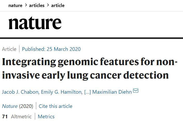 根据 Nature 杂志今天发表的一项研究,斯坦福大学研究人员开发了一种机器学习方法,能够实现早期肺癌患者的鉴别筛查。这一方法基于检测血样中的肿瘤源性 DNA(即液体活检),也就意味着对肺癌高危人群的筛查,做到了早期且无创。