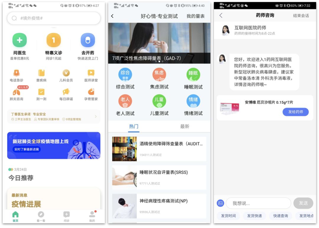 全科平台类。如,好大夫、微医、丁香医生为主流,提供科普内容、问诊、处方、购药的闭环服务。