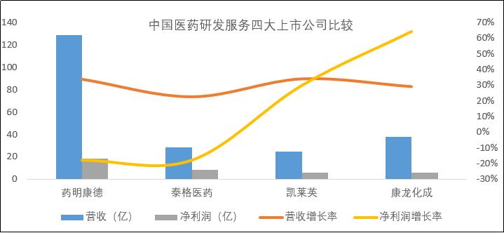 中国医药研发服务市值前四大公司营收及净利润