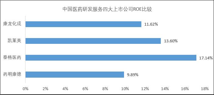 中国医药研发服务市值前四大公司ROE对比