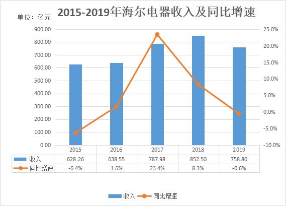 2019年海尔电器分类收入及业绩构成比例(图片来源:海尔电器财报)