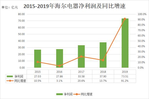 业绩公告显示,2019年海尔电器录得收入758.8亿元(人民币,下同),同比下降0.6%;公司股东应占年内溢利为73.51亿元,同比大幅增长91.2%,这其中包含了处置物流业务的收益。