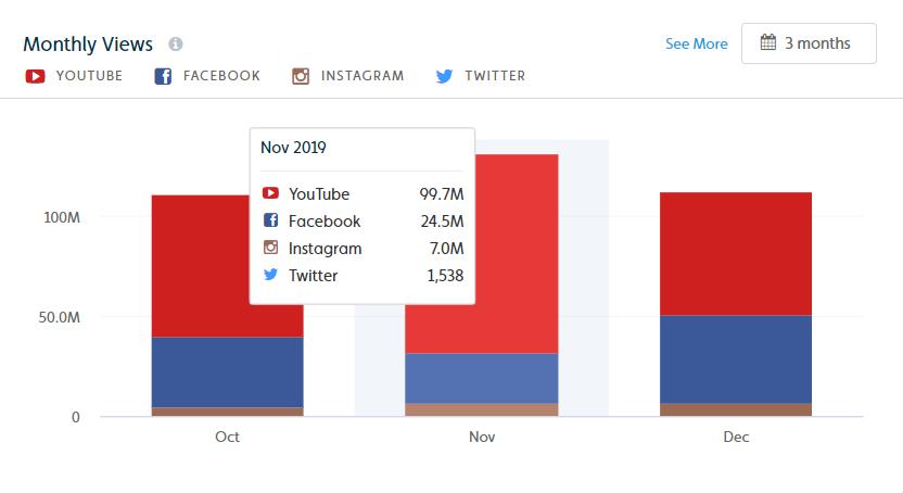 值得一提的是,在吸量方面,《无尽对决》通过电竞赛事进行切入,并且收获了相当不错的玩家关注度。目前游戏在Youtube、Facebook、Instageam和Twitter上的比赛等相关视频总共获得了1.31亿的播放量。在去年11月的M1(MLBB World Championship 2019)赛事官方频道在线观看人数峰值达到了65万人。