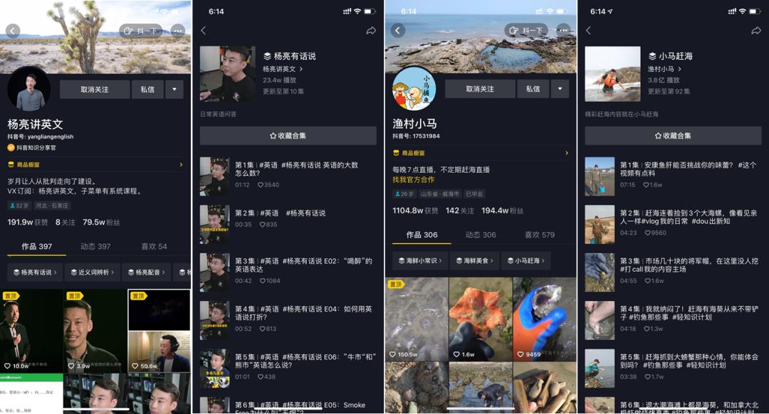 有的主播还会将优质短视频内容做分类,做成内容合集放在首页,方便用户在第一时间感受到账号内容的价值而关注主播。